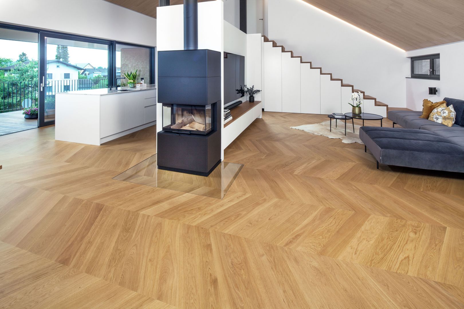 Wer sich in Sachen Bodengestaltung für Natürlichkeit pur entscheidet, dem stehen zahlreiche prächtige Facetten offen. Da begeistern einerseits herrliche Dielen in unterschiedlichsten Längen und Breiten, Maserungen, Farb- und Beiztönen, andererseits verzaubern Parkettböden in verschiedenen Mustern und Verlegearten. Auch Fischgrät-Parkett ist wieder mehr als en vogue. Und wer es prächtig und ausgefallen liebt, greift vielleicht sogar auf einen der einzigartigen Tafelböden zurück.