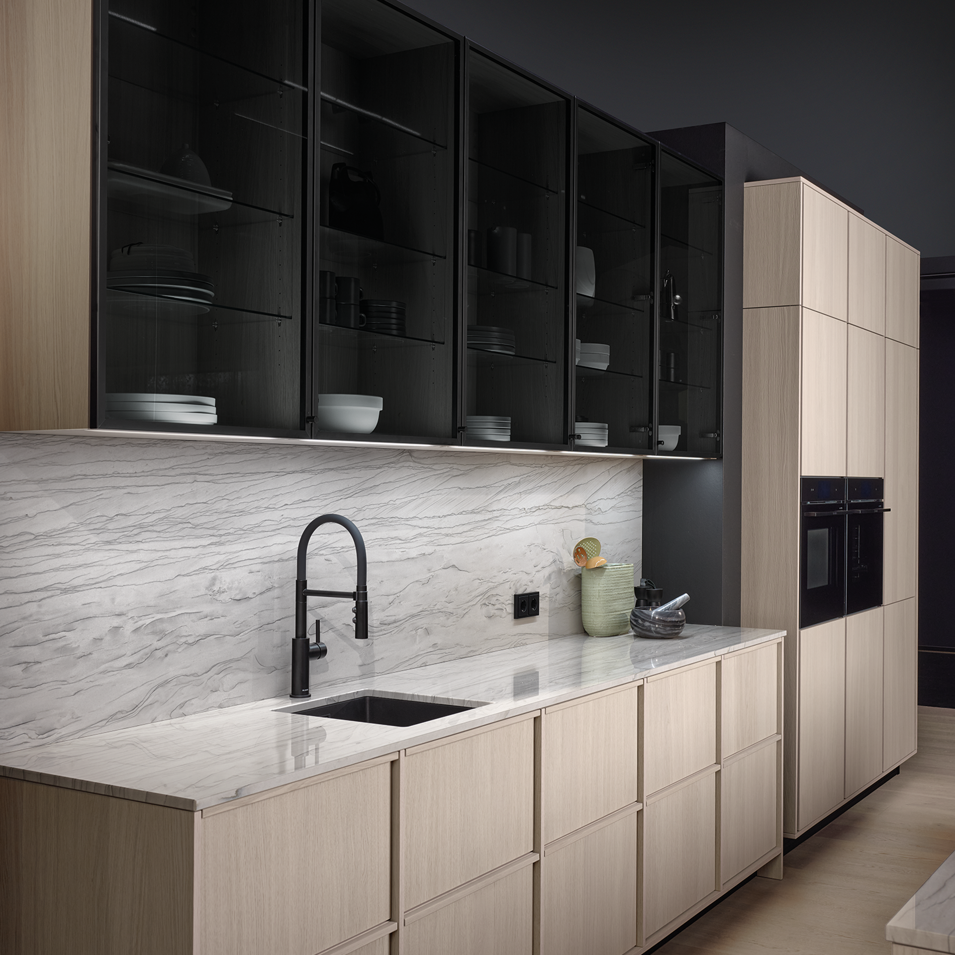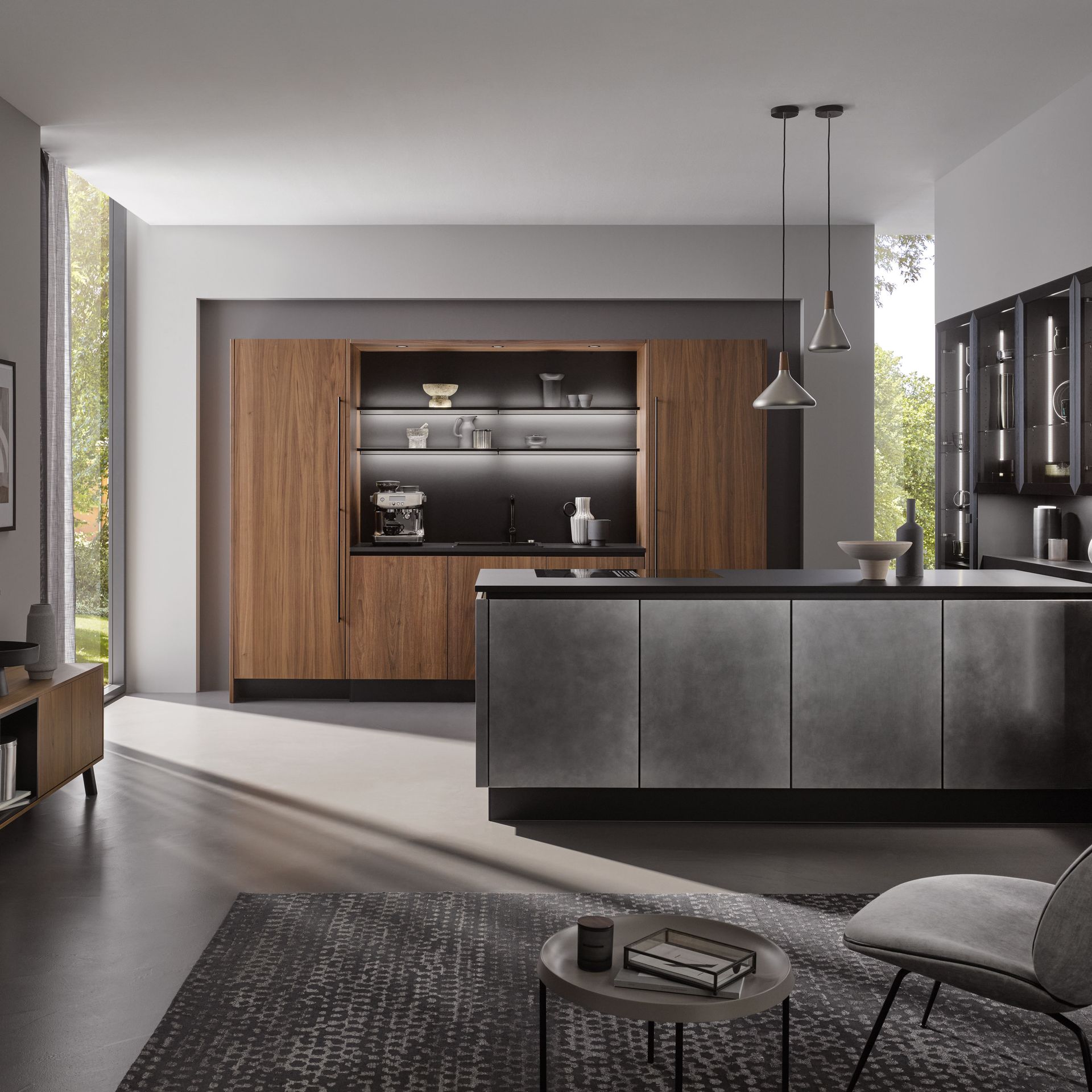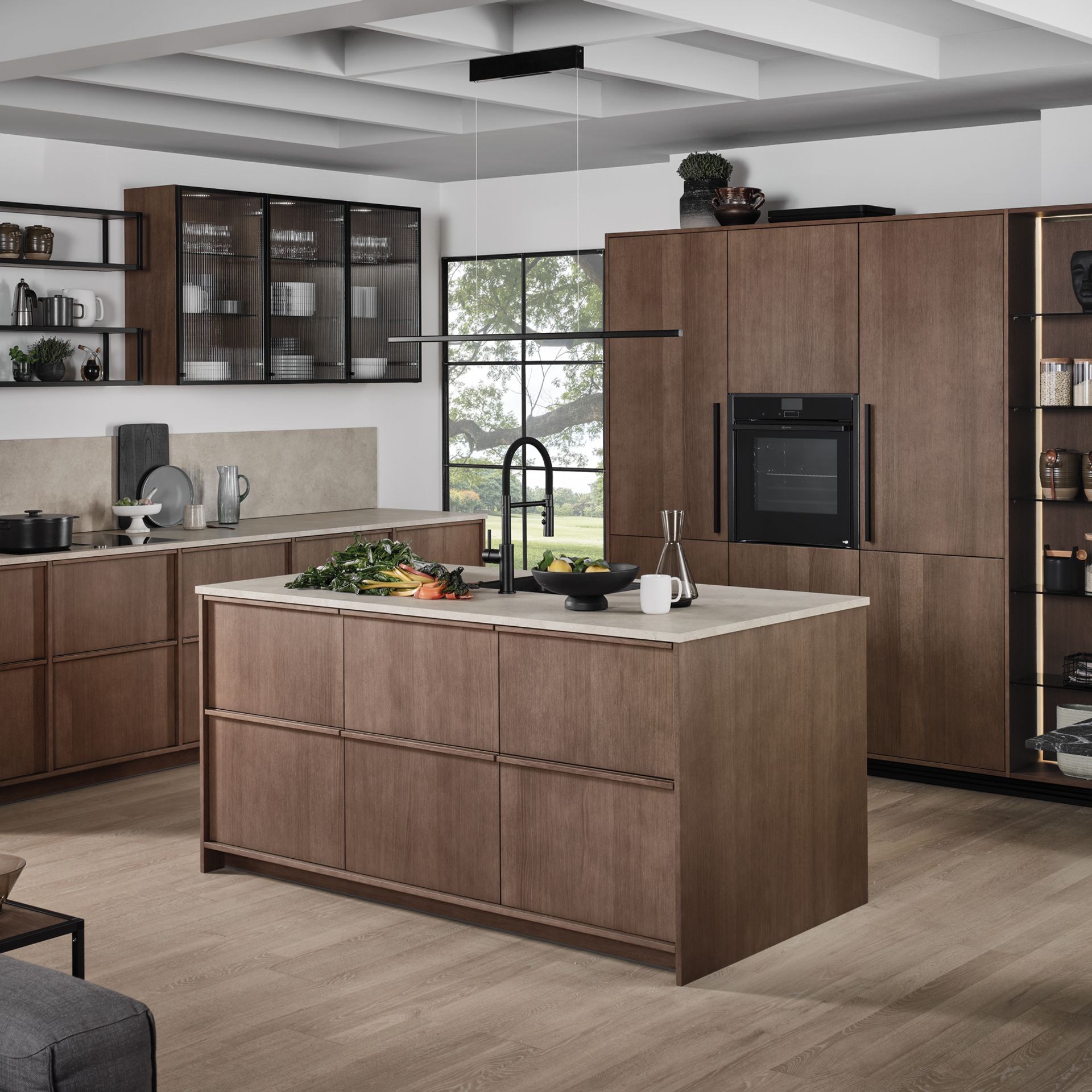 Wie sieht die Küche in den 2020-er Jahren aus? Eines ist klar: Sie ist offen für Neues. Offenes Wohnen ist so aktuell wie nie zuvor, und die einzelnen Lebensbereiche verschwimmen. In der Küche wird gearbeitet, gustiert und gekostet, auch gegessen, gechillt und verweilt. Das nicht mehr so wie vor einigen Jahren meist in klinischem Weiß, sondern in eher dunkleren Tönen. Dabei reicht der Bogen von Anthrazit über Mitternachtsblau und Tannengrün bis zu dunklen Hölzern, in die sich immer wieder ein neuer, leichter Rosé Ton mischt und für frischen Wind sorgt. Diese Farbwelt ist oft matt, in Anti-Fingerprint Optik, meist grifflos und mit vielen praktischen Details gespickt. Es gibt unzählige Varianten, um typische Küchenhelfer verschwinden zu lassen, die dann mit einem Handgriff sofort parat sind. Die Zeiten, in denen die Küche offensichtlich mit ihren technischen Hilfsmitteln geprahlt hat, sind Schnee von gestern. Alle Linien sind klar und puristisch. Die Küche beeindruckt als stylishes Designmöbel und Blickfang zugleich.