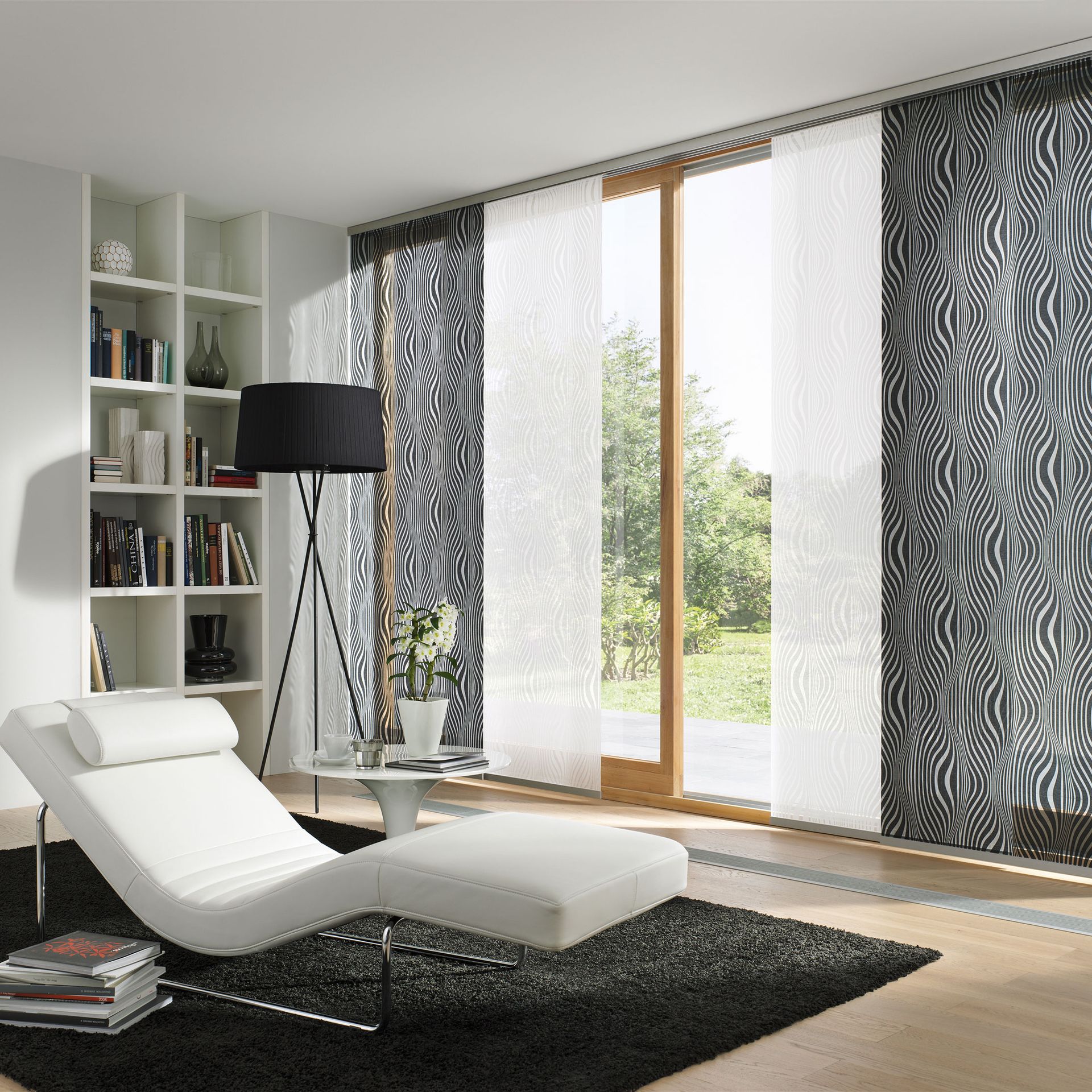 Wer die Symbiose aus puristischem Design, geraden Linien und funktionaler Beschattung für breite Fronten sucht, ist beim Flächenvorhang genau richtig. Durch die mehrläufigen Schienen können sowohl unterschiedliche Abdunkelungsstufen als auch verschiedenste Designs perfekt kombiniert und die Stoffe bzw. Behänge auch jederzeit ausgetauscht werden. In der Regel werden Flächenvorhangsysteme mittels Schleuderschiene oder Schnurzug bedient.